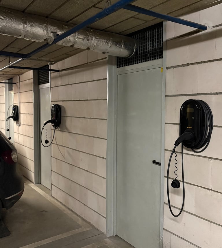 Įkrovimo stotelė su lizdu, dinaminio galios balansavimo funkcija bei tvarkaraščių sudarymo galimybe per mob. aplikaciją.