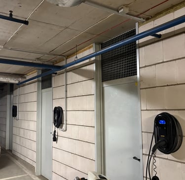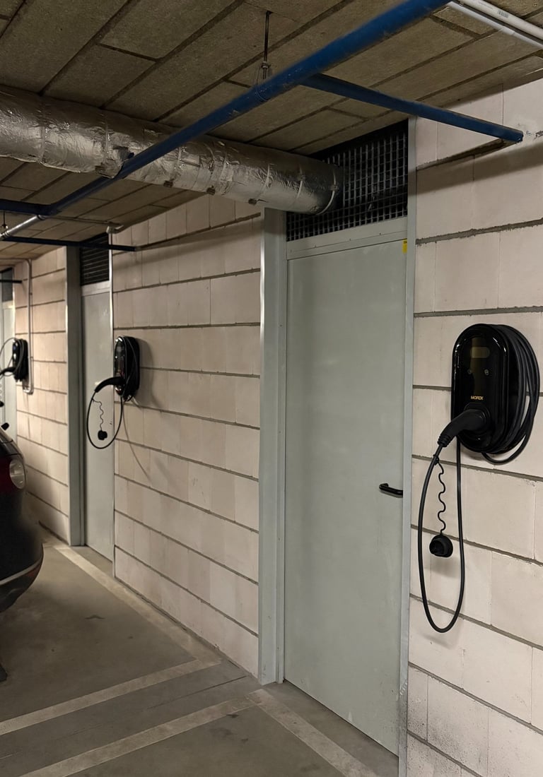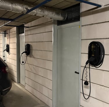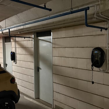 Gavus užklausą dėl įkrovimo stotelės įrengimo atvykome į apžiūrą, kurios metu įvertinome įrengimo darbus individualiam klientui, tačiau negalėjome praleisti pro akis bendruomenės pasiruošimo ateičiai. Dauguma daugiabučio gyventojų jau buvo pasirūpinę individualiais elektros kabeliais, atvestais į savo sandėliukus prie parkavimo vietų, tačiau dauguma buvo skirti vienfazei rozetei, o ne įkrovimo stotelei.